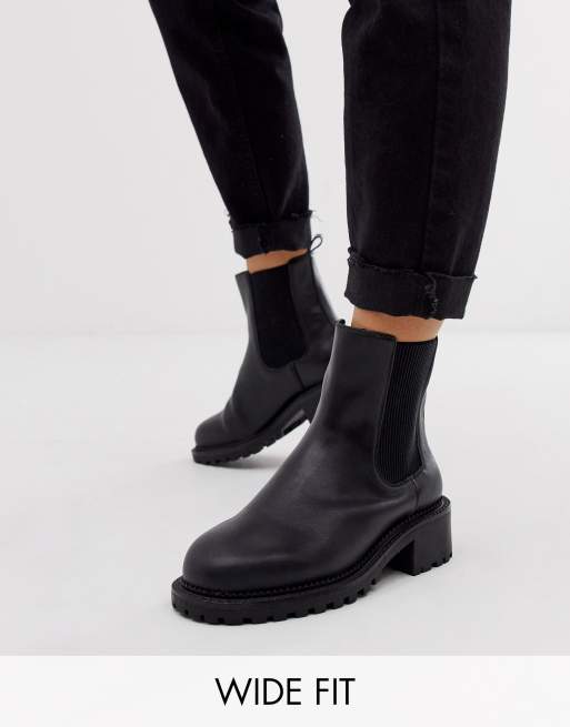 ASOS DESIGN Wide Fit Action chunky chelsea boots in black ...